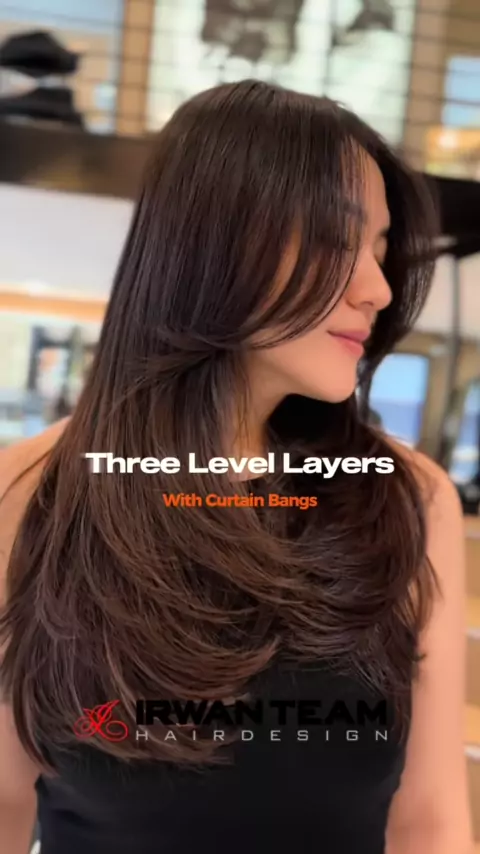 Three Level Layers With Curtain Bangs##irwanteampik#irwanteamhairdesign#threelayers#hairtok#salon#salonpik#salonjakartautara