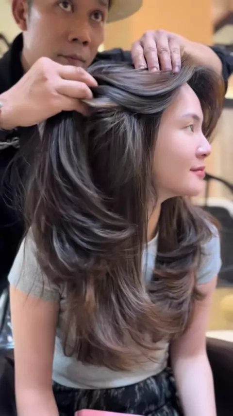 Three Level Layers With Curtain Bangs##irwanteampik#irwanteamhairdesign#threelayers#hairtok#salon#salonpik#salonjakartautara