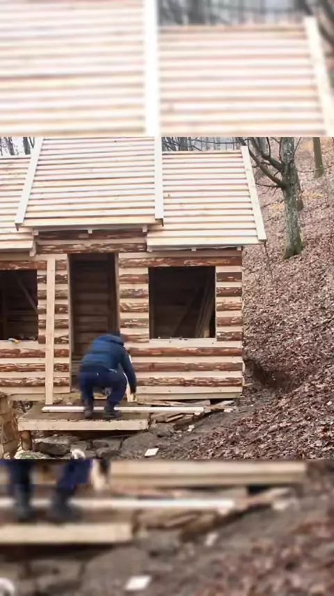 Building an amazing HOUSE ON A STEEP MOUNTAIN##bushcraft#survival#DIY#cabinhouse