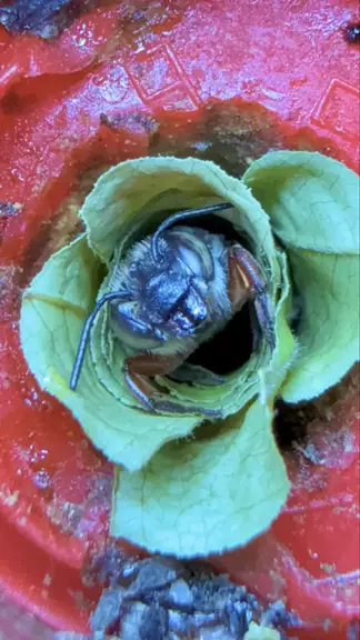 Esta é uma abelha solitária do gênero Megachile, também conhecida como abelha corta-folha ou abelha cortadeira. Isso porque a fêmea dessa espécie corta folhas de plantas, as transporta para o ninho e reveste o interior do túnel, criando uma proteção para as células de cria e os ovos. #abelhamaravilha #abelhasenativas #meliponicultura #animais #abelhas