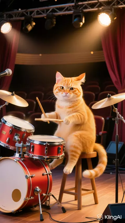When an orange cat plays the drums while singing. #orangecat #domesticcat #cuteanimals #KlingAI #KlingAudioChallenge