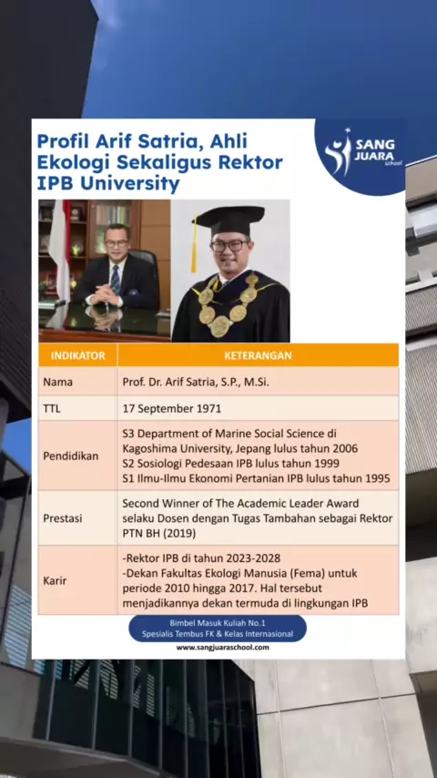 Prof. Arif Satria, Ahli Ekologi sekaligus Rektor IPB University 🤩😍 yang impian nya masuk IPB University, absen? 👆🏼yang sedang mempersiapkan diri untuk SNBT semangat yaa❤️🔥 # #masukfk #bimbelterbaik #snbt2024 #utbk2024 #bimbelkarantina #fakultaskedokteran #masukkampus #kedokteran #pejuangkedokteran #kampus #information #klarifikasi