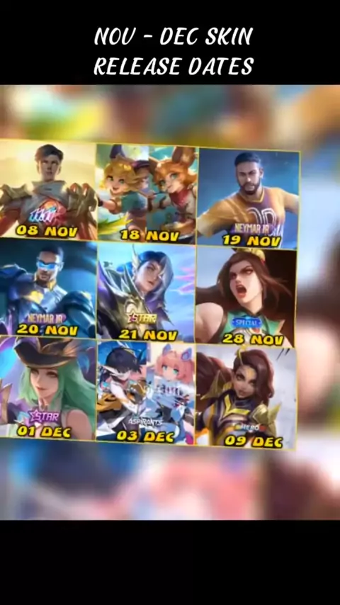 November - December 2022 New Skins Release Dates. Which one do u most excited?#mobilelegends#mobilelegends_id##batam#mlbbph