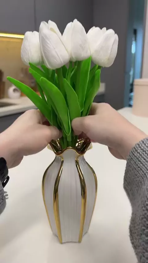 ✨ Um toque de elegância na sua decoração! 💐 Esse vaso cerâmico com acabamento dourado é perfeito pra deixar qualquer cantinho mais sofisticado e moderno. 😍 Feito com design ondulado e detalhes em ouro, ele combina com flores naturais ou artificiais e transforma o ambiente com charme e estilo. 🌿 Parece de luxo… mas é da Shopee! 💛