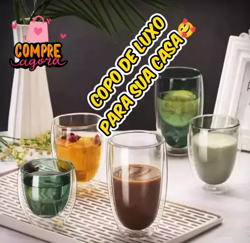 copo de vidro parede dupla de vidro para café chá suco copo duplo isolante #copo #LAR #cozinha #Achadinho #luxo