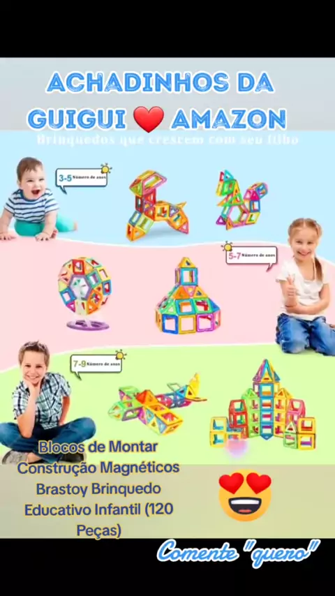 Blocos de Montar Construção Magnéticos Brastoy Brinquedo Educativo Infantil (120 Peças) Link de compra: https://amzn.to/3uCTibd