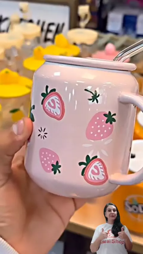 Caneca com canudos de Cerâmica 380 ML #shop #achadinhos #caneca #utilidades