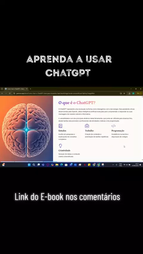 Você já ouviu falar no ChatGPT, mas ainda não sabe por onde começar? Eu preparei um guia gratuito e completo pra te mostrar, passo a passo, como usar essa inteligência artificial no seu dia a dia. Seja pra estudar, trabalhar, escrever, criar conteúdo ou organizar suas ideias... Link: https://bit.ly/3T5tTQj #ChatGPT #InteligenciaArtificial #ComoUsarChatGPT #IAparaTodos #Produtividade