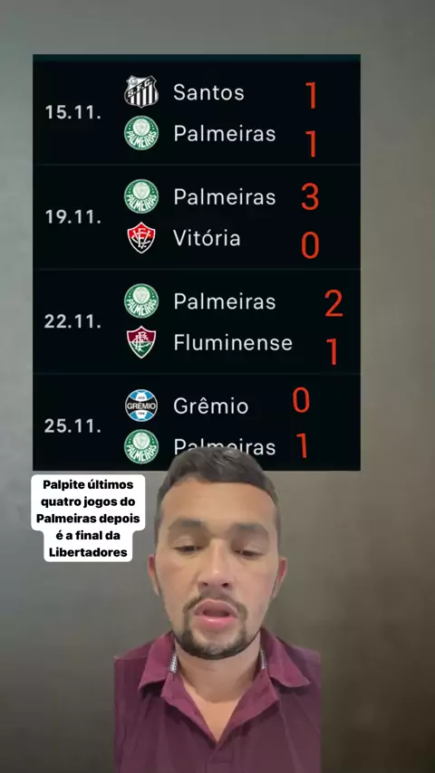 Palpite últimos quatro jogos do Palmeiras depois desses quatro jogo é a final da Libertadores Brasileirão Série a