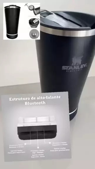 Um copo stanley com caixinha de música, é tudo de bom.