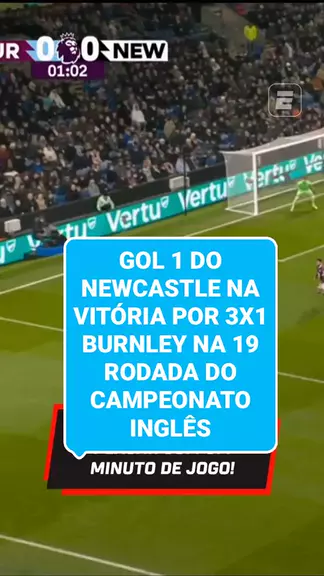 #NOTICIASESPORTIVAS #noticiasfutebol GOL 1 DO NEWCASTLE NA VITÓRIA POR 3X1 BURNLEY NA 19 RODADA DO CAMPEONATO INGLÊS