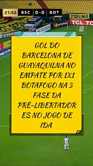 #noticiasesportivas #NOTICIASESPORTIVAS GOL DO BARCELONA DE GUAYAQUILNA NO EMPATE POR 1X1 BOTAFOGO NA 3 FASE DA PRÉ-LIBERTADORES NO JOGO DE IDA