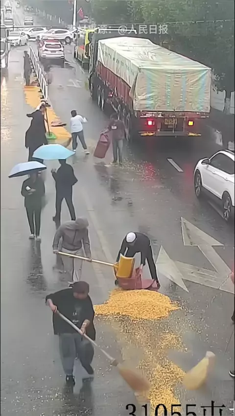运输黄豆意外洒落#黄豆 #运输 #团结 #感动 #ai