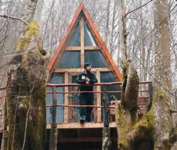 Constructing a shelter alongside the river #mountain #primitive #camping