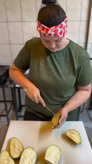 Amei essa receita de berinjela 🥰 #rotinadetrabalho #rotinanacozinha #berinjelaassada #batatarustica