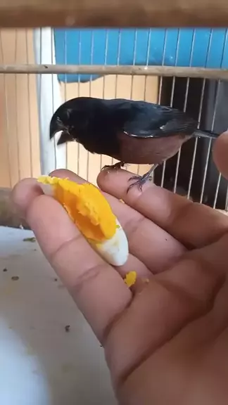 Já tinha visto curió comendo ovo? #curio #amantesdecurio #curiócantador #curiozeiros #Logan