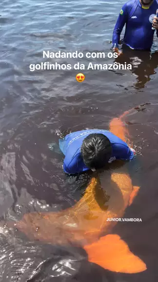 Nadando com os golfinhos da Amaz么nia 馃槏 #ultra10kvis #EstrelaDeFam铆lia #CrescerNaFam铆lia