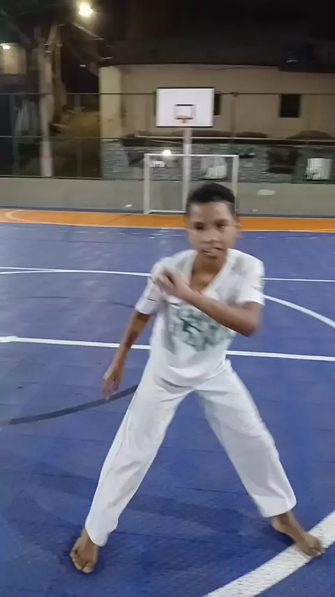 Aluno Gigante. Floreio: pião de mão e leque. O menino e bom,bate palma pra ele