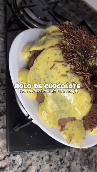 bolo de chocolate com cobertura de maracujá 💛 . #bolodechocolate #moussedemaracuja #pascoa #tpm #fleischmann
