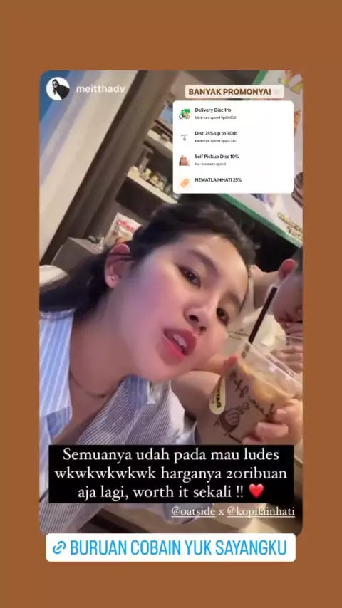 “Kata Sayangku Meitha tentang Kopi Lain Hati x Oatside” Thank you review nya Ci Meittha! Tim Oatside Strawberry juga nihh😋 #Kopilainhati #NikmatGroup