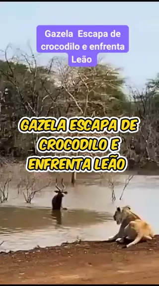 gazela escapa de crocodilo e enfrenta Leão #crocodilo #gazela #Leão #animais #selvagem
