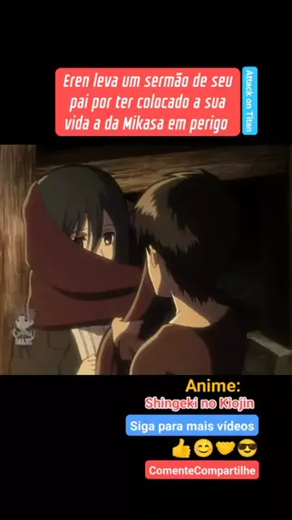 Eren leva um sermão de seu pai por ter colocado a sua vida a da Mikasa em perigo #anime #guerra #viral #Fyy #EstrelaDeFamília