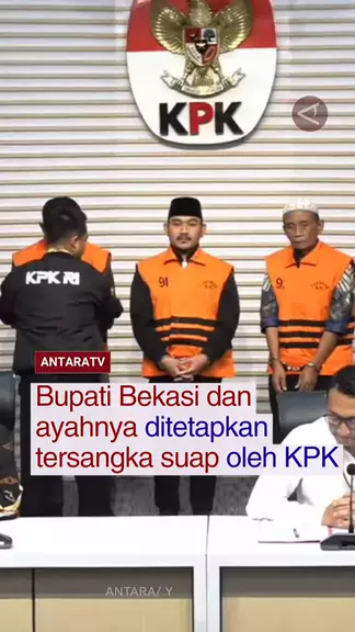 Komisi Pemberantasan Korupsi (KPK) menetapkan Bupati Bekasi Ade Kuswara Kunang (ADK) dan ayahnya HM Kunang (HMK) sebagai tersangka dugaan suap. Ade Kuswara bersama sang ayah diduga terlibat tindak pidana korupsi terkait suap ijon proyek di Kabupaten Bekasi, Jawa Barat. Simak berita terkini dan program-program menarik Antara TV di youtube Antara TV Indonesia dan antaranews.com/video! #komisipemberantasankorupsi #bupatibekasi #tersangka #kasussuap #infobekasi