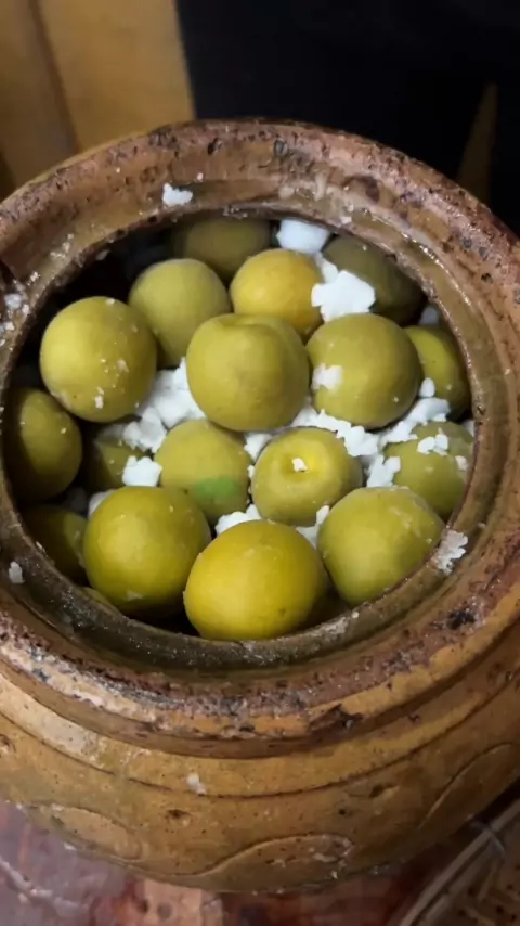 Plumnya terlalu asam. Hari ini, orang tua menggunakan plum untuk membuat permen asam buatan sendiri. Padahal rasanya sangat lezat.
