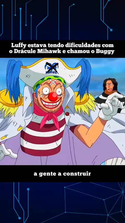 Luffy estava tendo dificuldade com o Drรกcule Mihawk e chamou o Bugyy