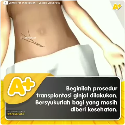 Transplantasi ginjal adalah operasi untuk mentransfer ginjal yang sehat dari pendonor kepada penerima (recipient). Penerima biasanya adalah pasien yang mengalami gagal ginjal kronis. Ginjal adalah organ yang berfungsi untuk membuang kotoran dari darah. Jika ginjal tidak berfungsi dengan benar, kotoran akan menumpuk pada darah dan dapat mengakibatkan komplikasi pada tubuh. #kesehatan #viral #trending #ginjal #sehat