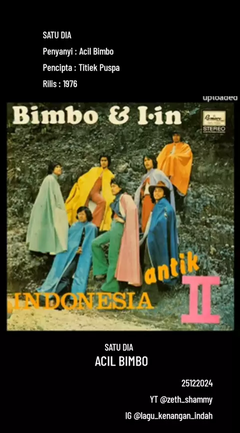 SATU DIA Penyanyi : Acil Bimbo Pencipta : Titiek Puspa Rilis : 1976 #satudia_acilbombo #satudia #acilbombo #titiekpuspa #longervideos #musiknusantara #musiklegendaris #oldies #oldiesbutgoodies #lagukenangan #lagukenanganindah #laguenakdimasanya #lagujadul #zethshammyapalem