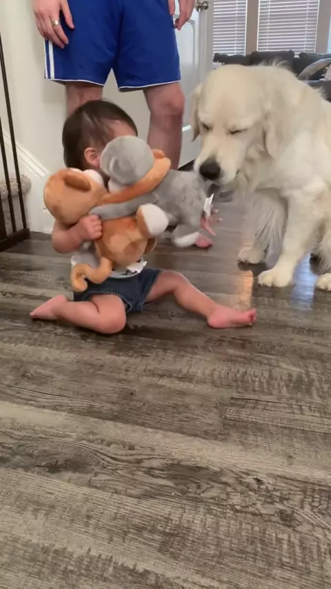 This is almost like having two toddlers, I guess they are best friends until it comes to plushies. Thanks to @The Dodo for the cute gift. #goldensandbabies #babiesof #dogsandbabies #goldenretriever #englishcreamgoldenretriever #cute #funny #funnyvideos