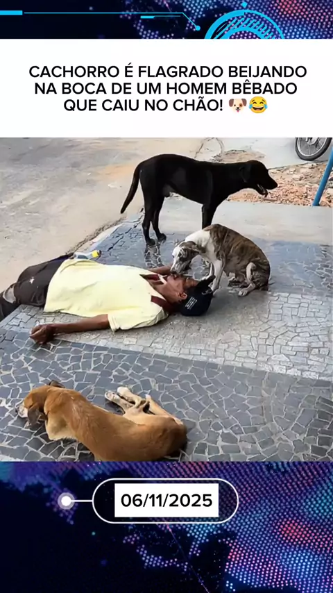 CACHORRO É FLAGRADO BEIJANDO NA BOCA DE UM HOMEM BÊBADO QUE CAIU NO CHÃO! 🐶😂 #Notícia #entretenimento #últimanotícia #News #cachorro
