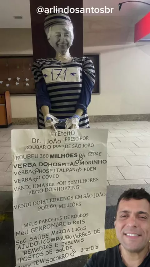 Um boneco do prefeito dr joão, foi colocado na manhã de hoje na casa do alemão. #saojoaodemeriti #meriti #drjoao