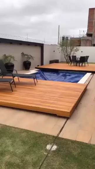 Deck Retrátil para Piscina • Além de aproveitar melhor o espaço, também é mais seguro para quem tem crianças e animais de estimação. Vocês teriam? 🤩🤍 Por: @serralheriaartistica.oficial •───────────────────────• #arq_designer #arqdesigner #grupoarqdesigner