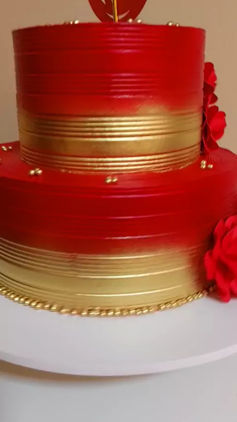 bolo vermelho com dourado 🌹❤️ #bolovermelho #bolodafran