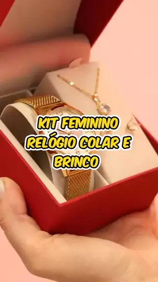 kit relógio feminino colar e brinco