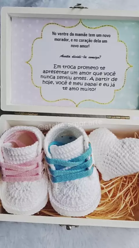 Aqui na ateliê sempre fazendo parte dos melhores momentos desde a descoberta da gravidez até a revelação. Sapatinhos para usar nos primeiros meses. #revelaçãodesexo❤️💎🎊🎊 #artesanato #meninooumenina💙💖 #croche #calçadosbaby