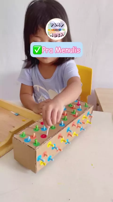 Esta atividade trabalha: 🟢Habilidades motoras finas. 🟠Capacidade de Percepção Visual e Atenção. 🟣Percepção cinestésica e habilidades de localização espacial. A brincadeira faz parte da educação da criança, é quando ela desenvolve a imaginação! Vídeo #repost @playwithadia #brincar #educacaoinfantil #atividadespedagogicas