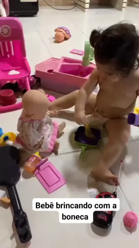 Bebê brincando com a boneca #babykids #Bebefofura #CrescerNaFamilia #EstrelaDeFamília #viral