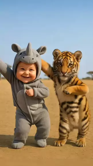 CUTE BABY DANCING WITH TIGER 🦏🐅❤️ #baby #kidsoftiktok #funnybaby #funnydance #babydance 更多