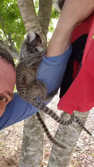 coloquei a cabeça para o saguim tirar o piolho e ele foi brincar.