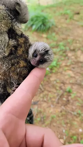 Pegando na cabeça do filhote de sagui todo molhada.