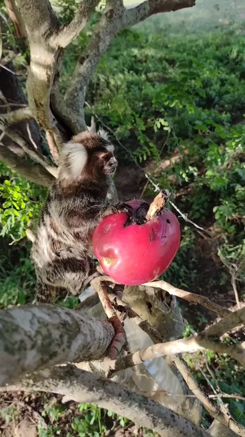 Macaco sagui comendo a pitaya. #sagui #primata #silvretta #macacos #silvrete