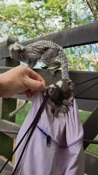 Macaco sagui vai roubar Banana no saco e ficar preso.