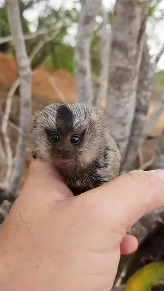 Tirei o filhote de sagui recém-nascido das costas do pai.