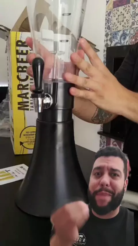 Torre de chopp @torremarcbeer da @marchesonioficial com ela você coloca sua bebida favorita e curte confortavelmente o seu lazer com sua bebida sempre gelada! #bbqemcasa #publi
