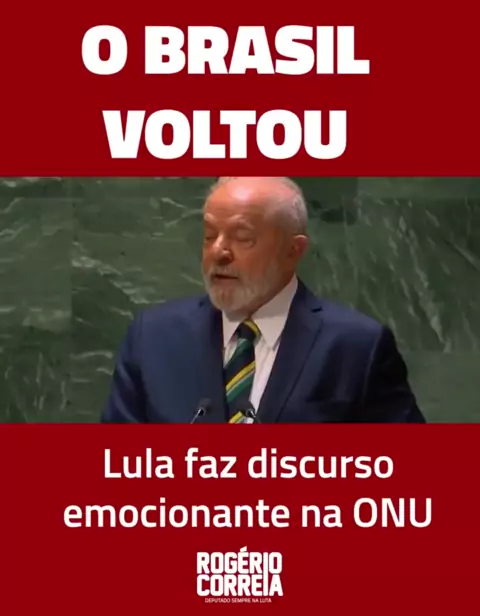 Mais uma vez Lula fez um discurso histórico na ONU, e o combate à fome é novamente um dos temas centrais Simplesmente emocionou o mundo.