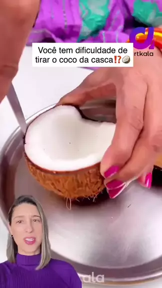 😱🥥Você tem dificuldade de tirar o coco da casca dura⁉️ “Chega de luta com o coco! 🥥💨 Uma dica simples: coloque o coco na panela com um pouco de água, tampe e deixe o vapor fazer o trabalho pesado. Depois é só destacar a polpa com facilidade! 👉🏼Já conhecia essa técnica? Manda para alguém que precisa saber disso📲💟🫶🏼 Crédito @ artkala4u ✨ #DicaDeCozinha #CocoNaPanela #TruquesDeCozinha #coco #dicas