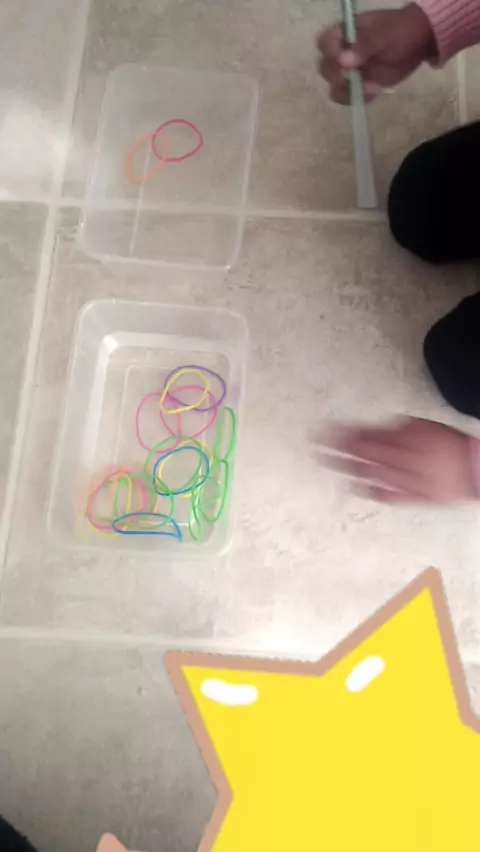 Misi : memindahkan karet berwarna warni dengan kayu